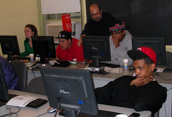 Above: Students working in the computer lab on their figure designs.