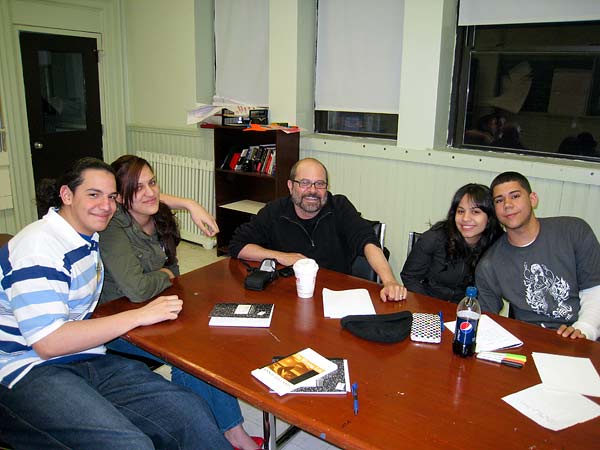 Above: the artist meets with youth from the Hyde Square Task Force during one of four writing workshops.