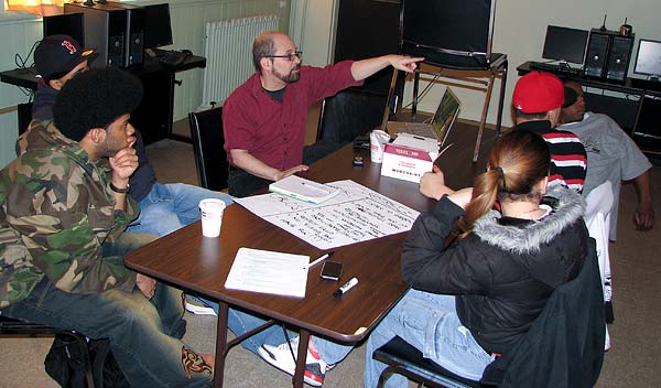 Above: Douglas Kornfeld discussing iconic symbols with workshop students.