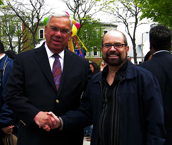 Above: The artist Douglas Kornfeld gets to meet Mayor Menino of Boston.