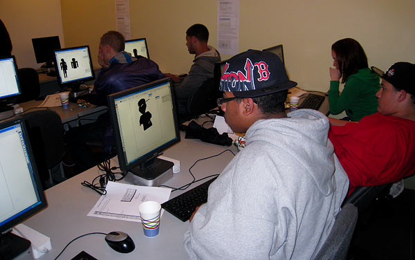 Above: Students working in the computer lab on their figure designs.